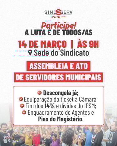 Assembleia Geral e Ato dos Servidores Municipais (14/03)