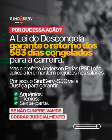 SindServ-SJC prepara ação judicial do Descongela Já: saiba como participar!